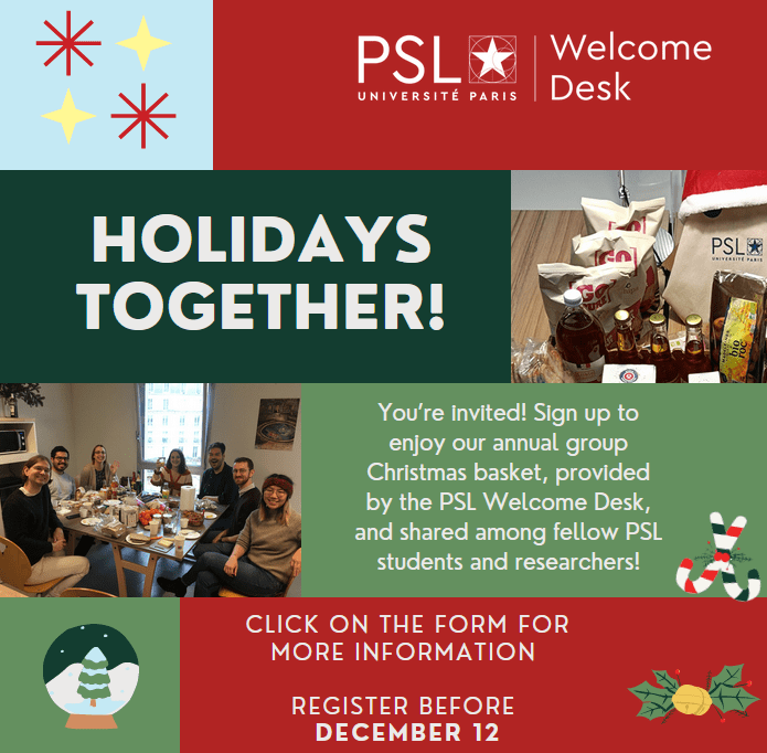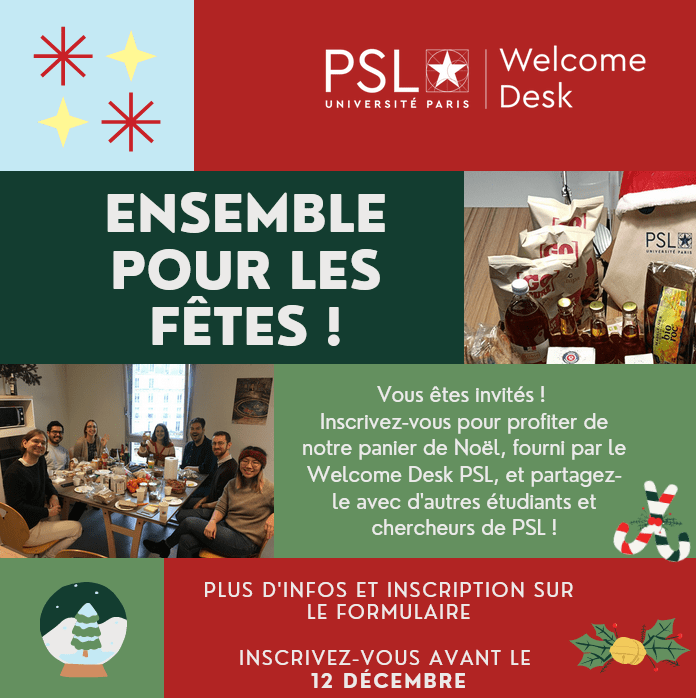 Dear Université PSL community, the Welcome Desk invites you to get together over the holidays by offering you a Christmas basket to share.